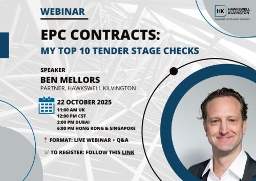 Ben Mellors is hosting a short, practical webinar to share a personal checklist of the top 10 key things to look for when reviewing EPC contracts at the tender stage. This session will lift the bonnet on how to assess risk and structure advice, distilled into a format that’s accessible and immediately useful.